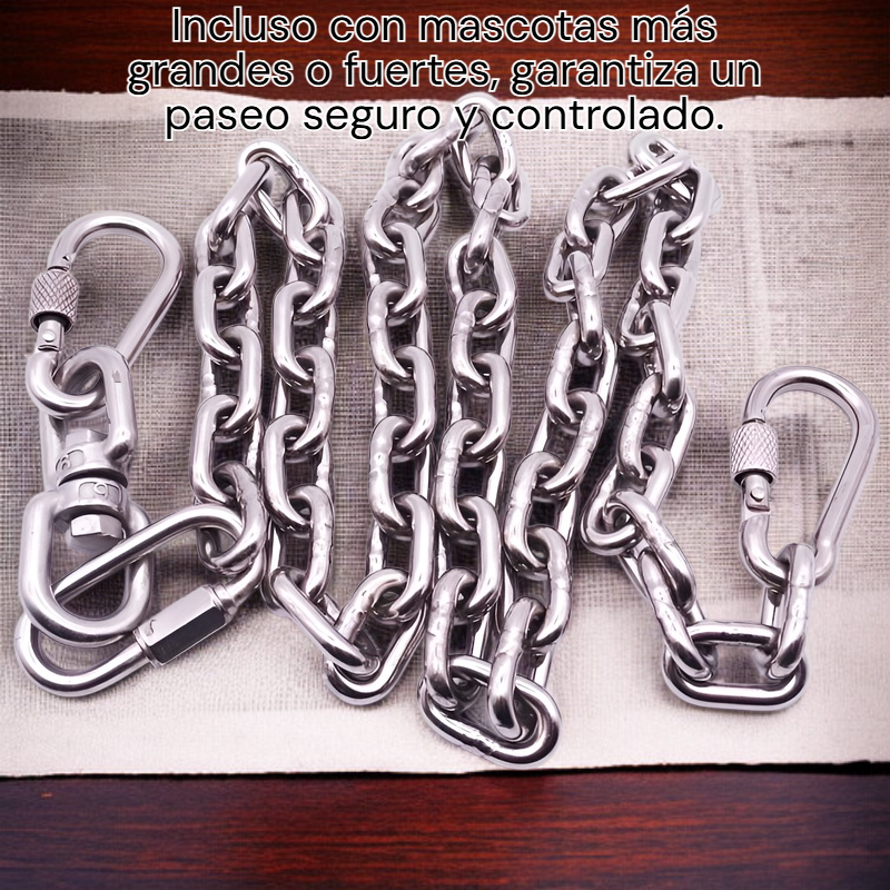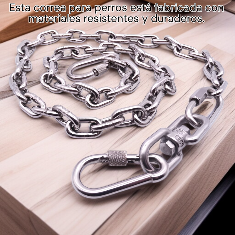 ● Cadena para perros fabricada con materiales resistentes y duraderos, ideal para paseos seguros y controlados incluso con mascotas grandes y fuertes.