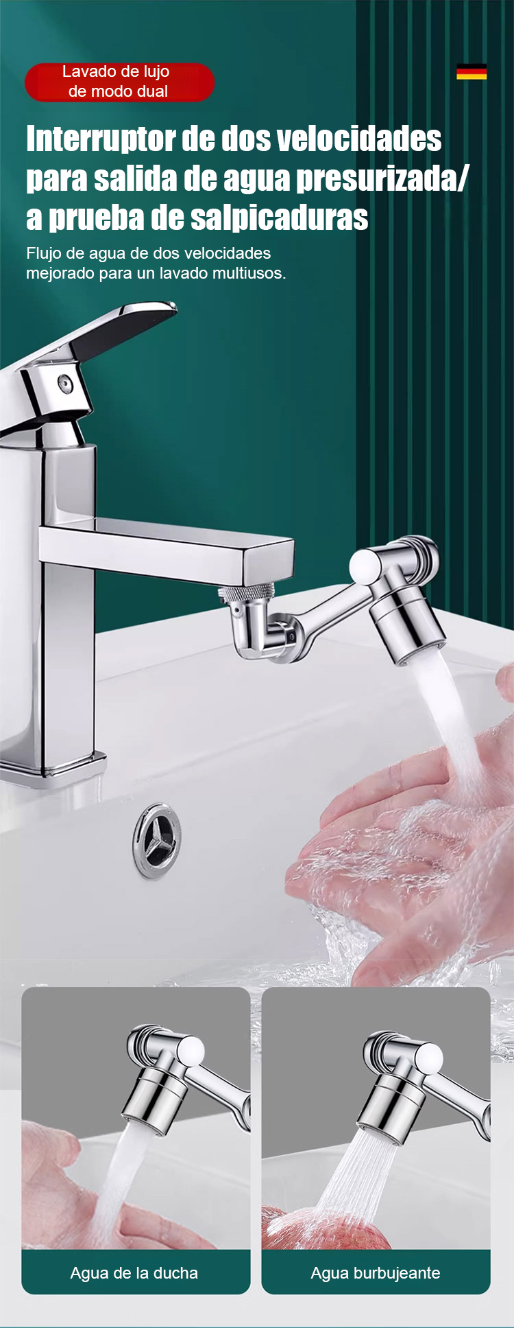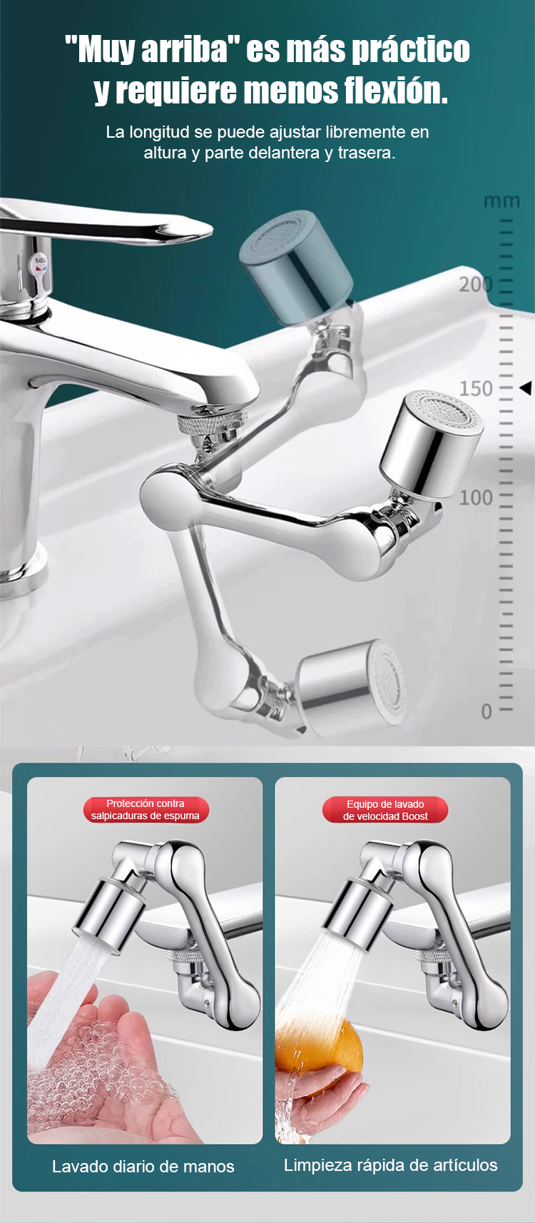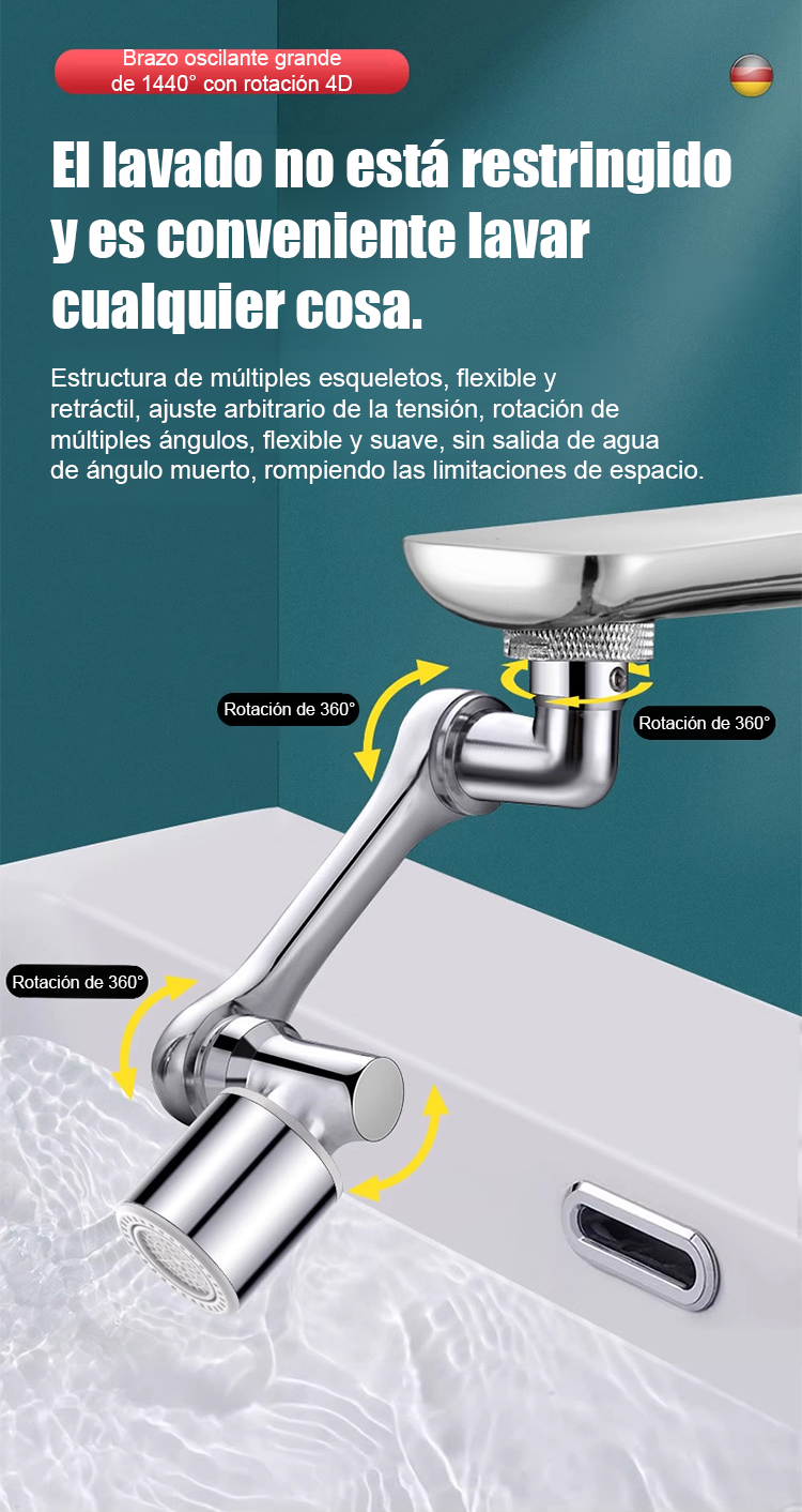 【Grifo multifuncional con brazo mecánico extensible y giratorio】Antisalpicaduras