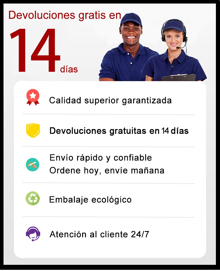 Calidad garantizada, política de devolución de 14 días, devoluciones y cambios sin complicaciones.