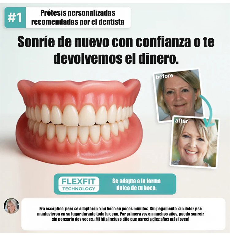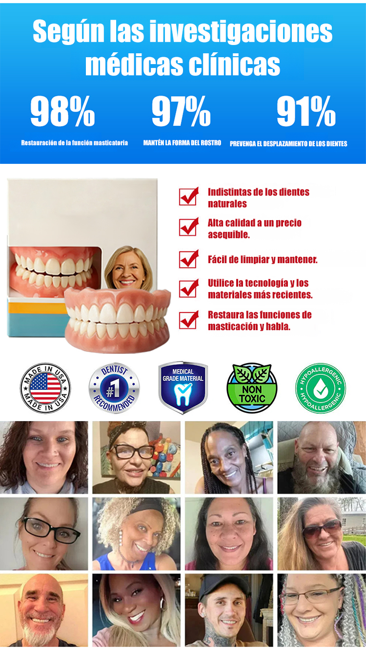 🦷🦷Cómodo y conveniente de usar, adecuado para todo tipo de dientes. Apariencia realista, uso natural e indoloro, ajuste seguro y cómodo. 🍎🍎¡Incluso al morder manzanas o huesos, puedes estar seguro! 💎💎Dureza a nivel de diamante, más duradero y resistente que los dientes naturales. 💆💆El uso prolongado también puede refinar la línea de la mandíbula y la forma del rostro, mejorando tus rasgos faciales. 🤣🤣Diseño antideslizante, evitando resbalones o desplazamientos incluso al hablar, reír o estornudar. 🦠🦠Potentes propiedades antibacterianas, fácil de limpiar incluso después de largos períodos de no uso, sin olor. ❤️❤️Nunca se amarillean, aflojan o caen, ¡dándote tranquilidad! 🔥🎁Más de 300,000 unidades vendidas a nivel mundial, con críticas entusiastas. 🙇🙇Estamos comprometidos a brindar el mejor servicio hasta que estés satisfecho.🚚🚚 ¡Las devoluciones son bienvenidas en cualquier momento si no estás satisfecho!
