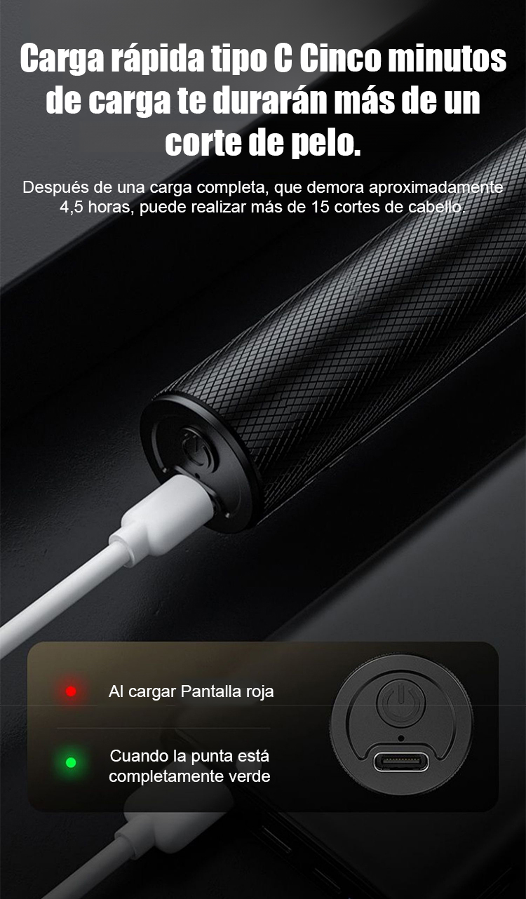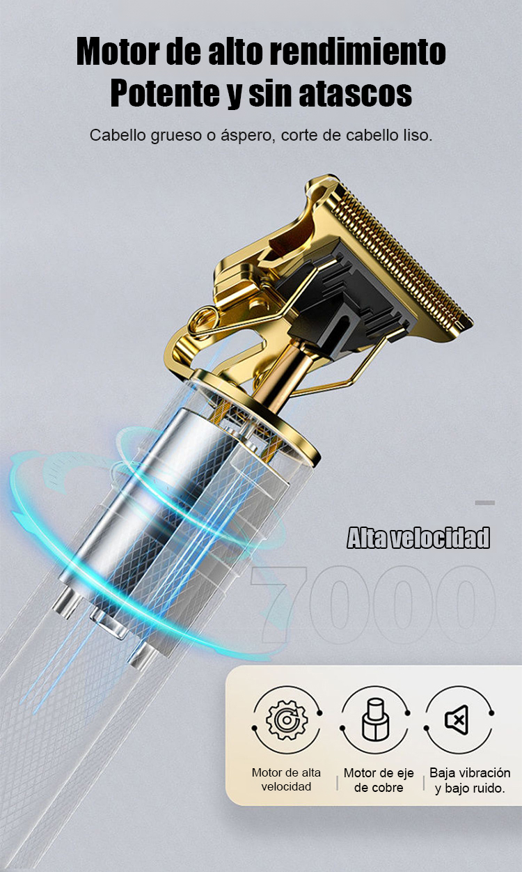 🇪🇺 Certificación de seguridad UE – motor estable, uso seguro⚙️ Cuchillas de acero sin separación – para cortes fade, rapado y detalle – fácil incluso para principiantes🔇 Potente, sin enganches, bajo ruido y vibración, carga rápida USB